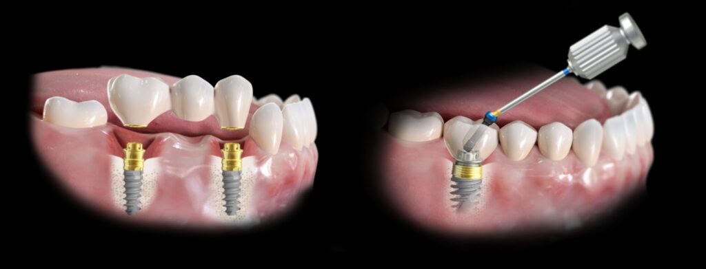 In den meisten Fällen können wir die gesamte Behandlung, vom Ziehen der nicht zu erhaltenden Zähne über das Setzen der Zahnimplantate bis hin zum Einsetzen vom ersten festen Zahnersatz an einem Tag durchführen.